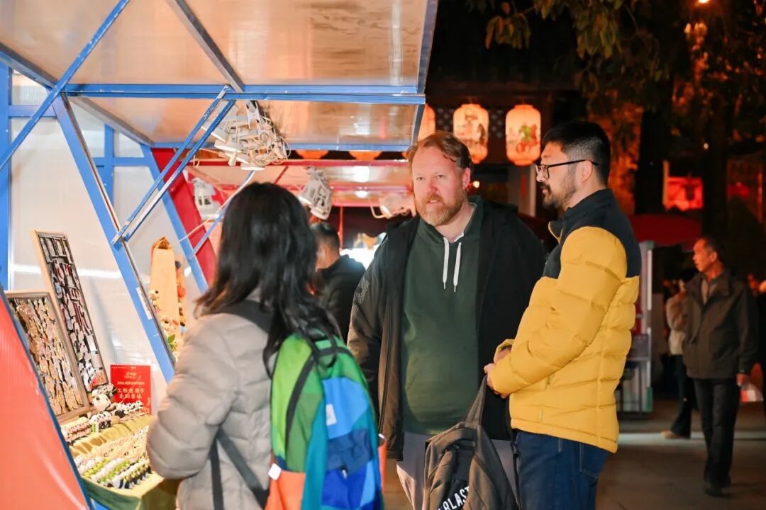 他们赏花灯、看表演,在青旅酒店体验包饺子,在武侯祠与三国人物装扮的NPC互动,在社区市集体验糖画拓印,无数个可感知的温暖触点以成都日常场景为载体广泛传播,让国际游客带走一座城市的记忆,以及一种对“安逸”生活的认同与向往。